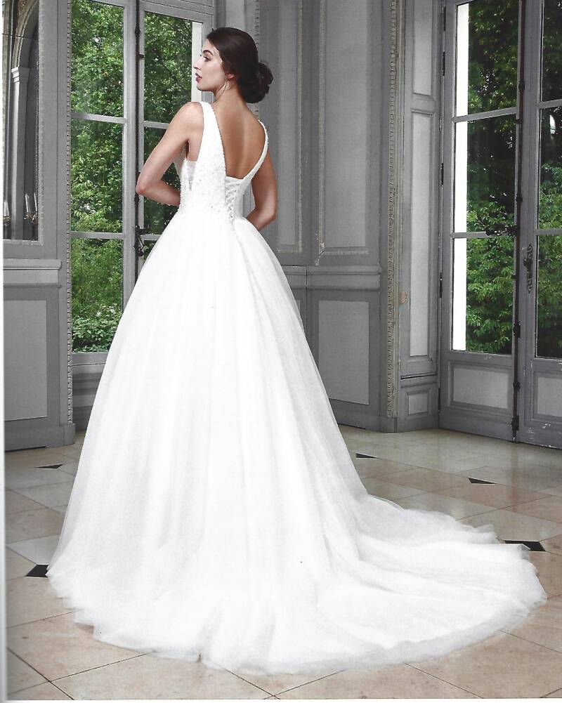 Joli modèle coupe trapèze en tulle, sans traîne