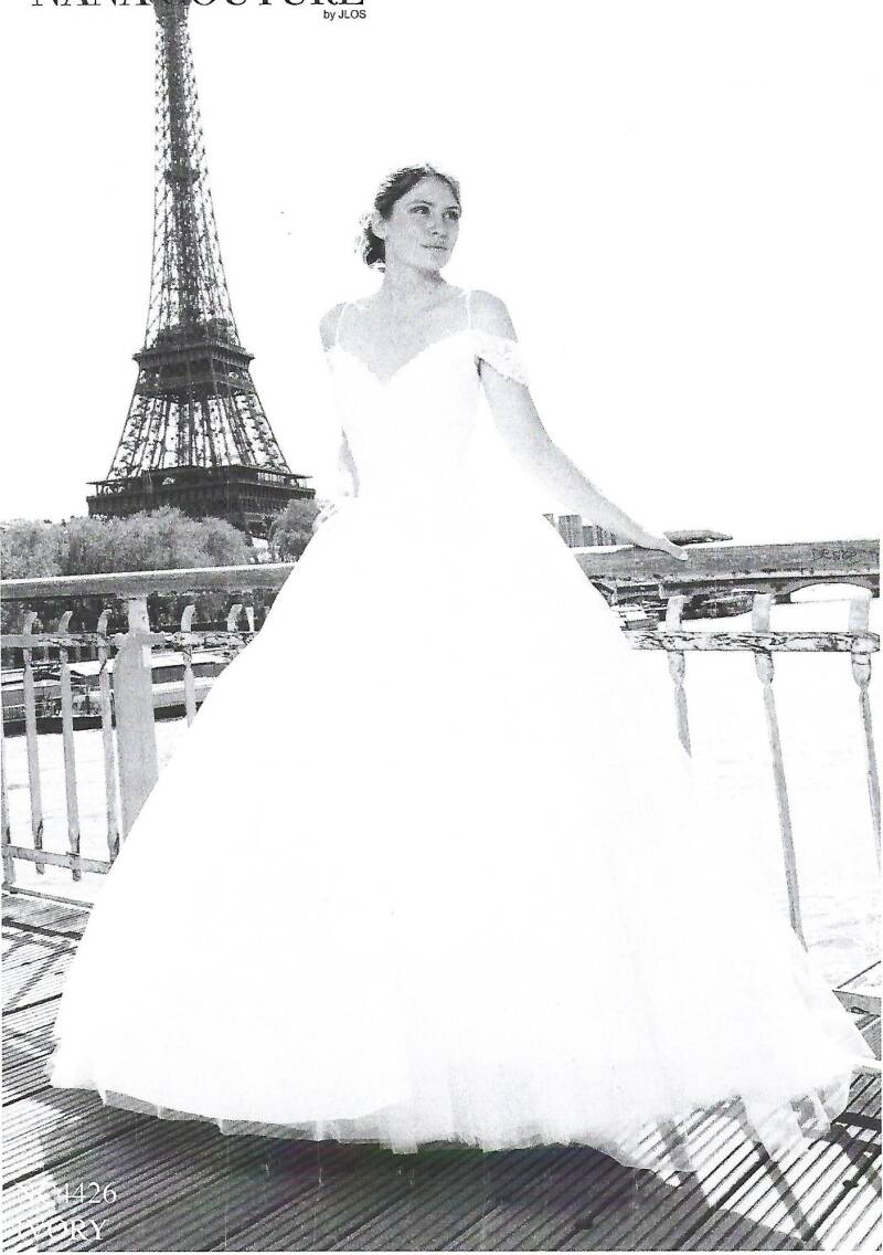 Délicates bretelles tombantes sur les épaules pour ce modèle, avec fines bretelles . jupe tulle légèrement pailleté;
