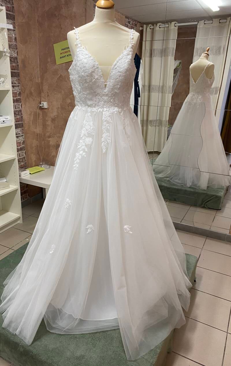 robe de mariée trapèze, haut de robe en dentelle, décolleté V
